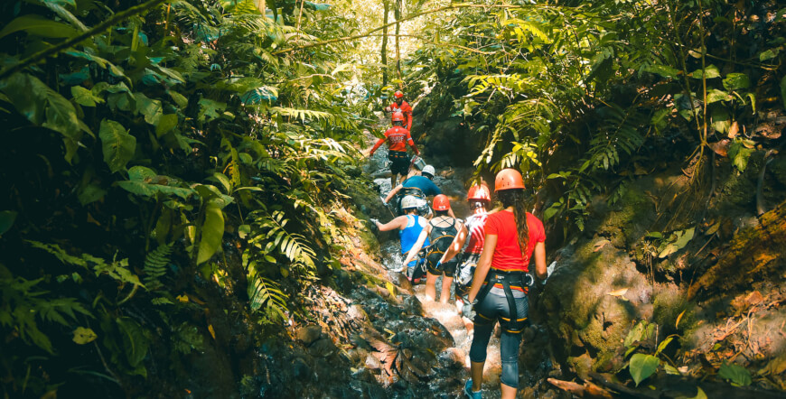 After a fun, 25-minute ride in your Jungle Limo, you’ll arrive at the Lost Canyon Ops Center. Is canyoning safe in Costa Rica? Your professional Desafio adventure guides will fit you with high-quality canyoneering gear and give you a safety talk and canyoning demonstration before beginning your adventure.
