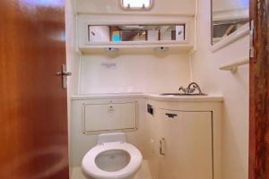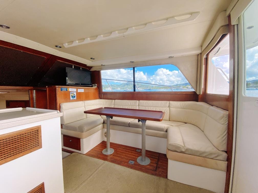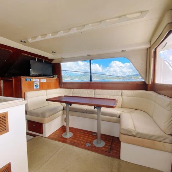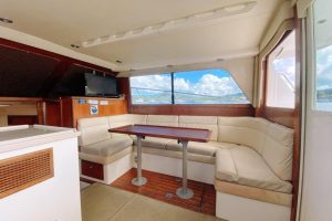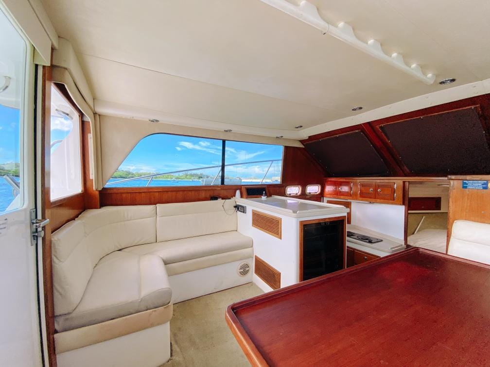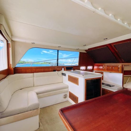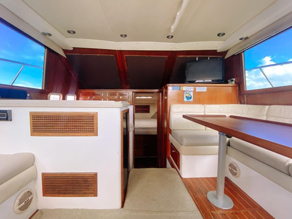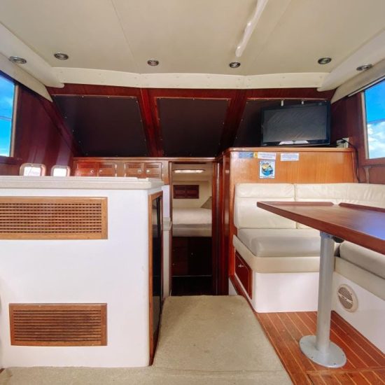 The Fish Tale II can accommodate up to 8 guests who will enjoy their day spending time in an air-conditioned salon, with a full private bathroom, full-size galley, queen berth, and a large lounge to beat the heat.