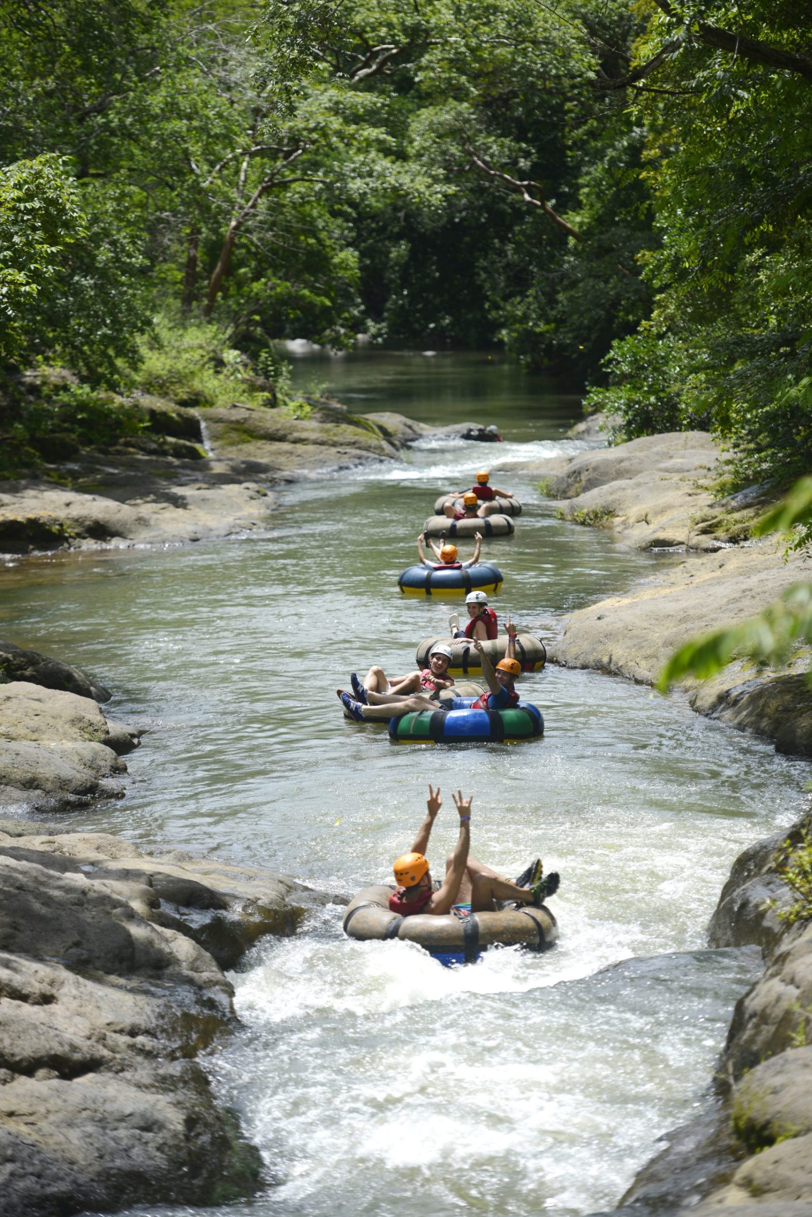 Following the ride, you will prepare for your river tubing adventure at the Hacienda Guachipelin changing rooms. Thereupon, you will receive a short briefing about river safety. Afterward, it’s just a short walk to the foot of the Victoria Waterfall where the overall spectacular tubing adventure begins. The Rio Colorado’s crystal clear water will send you over 5 kilometers downstream on a particularly delightful ride in your individual rafting tube. Our guides will ride down with you and ensure your ride runs smooth and safe.